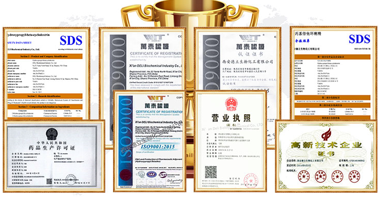 शीआन डेली बायोकेमिकल इंडस्ट्री कंपनी लिमिटेड एक उच्च तकनीक विशेषज्ञता वाला उद्यम है साइक्लोडेक्सट्रिन और उनके डेरिवेटिव का अनुसंधान एवं विकास, उत्पादन और बिक्री। हम स्थिर गुणवत्ता और विश्वसनीय सेवा के साथ दुनिया भर में ग्राहकों को फार्मास्युटिकल एक्सीपिएंट्स की आपूर्ति करते हैं।
