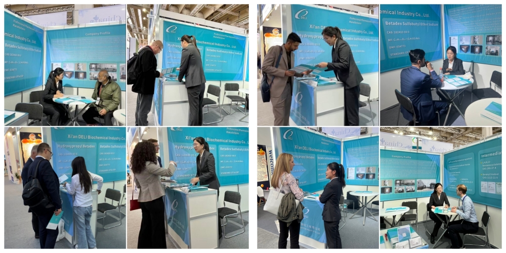 शीआन डेली बायोकेमिकल इंडस्ट्री कंपनी लिमिटेड ने गर्व से बूथ 8.0P30 पर अपने नवीनतम नवाचारों का प्रदर्शन किया, जिसमें हाइड्रोक्सीप्रोपाइल बीटाडेक्स (एचपीबीसीडी), बीटाडेक्स सल्फोब्यूटाइल ईथर सोडियम (एसबीईसीडी), ग्लूकोसामाइन सल्फेट सोडियम क्लोराइड, मेनाटेट्रेनोन और आईकोडेक्सट्रिन सहित उत्पादों की एक व्यापक श्रृंखला पेश की गई।