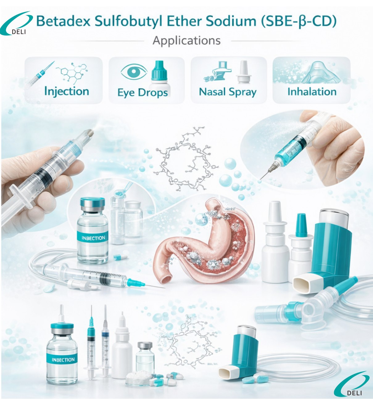 इंजेक्शन ग्रेड बीटाडेक्स सल्फोबुटिल ईथर सोडियम मुख्य रूप से गैर-मौखिक फार्मास्युटिकल खुराक रूपों में लागू किया जाता है जहां उच्च घुलनशीलता और सुरक्षा महत्वपूर्ण होती है। जलीय घुलनशीलता में सुधार करने और भंडारण और प्रशासन के दौरान फॉर्मूलेशन की स्पष्टता और स्थिरता बनाए रखने के लिए इसका व्यापक रूप से इंजेक्शन योग्य समाधानों में उपयोग किया जाता है।
